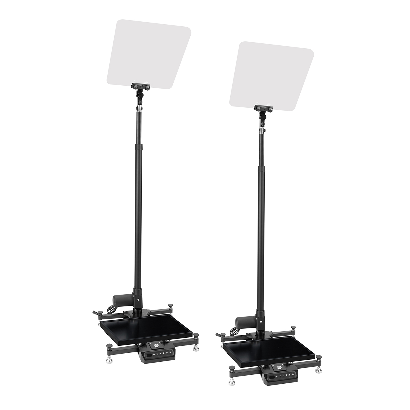 E-IMAGE presidential series teleprompter delivers professional prompting with a robust aluminum structure, supporting 15"/17"/19"/24" monitors via a 15cm adjustable slot for easy compatibility. Plus an optional 19" LED monitor with necessary cables and hardwar for out-of-the-box setup, saving debugging time.It features a 40×40cm anti-reflection coated beamsplitter (50:50 ratio,3mm tempered glass), ensuring clear prompting and transparent audience view. With smooth height adjustment, 45°–75° tilt range, built-in sunshield, and 5.2m reading range, it is ideal for conferences, presentations, and professional video applications.