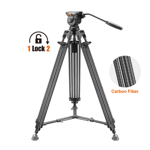 E-IMAGE EK523 carbon fiber tripod is engineered for lightweight videography. It includes a fluid head, a two stage carbon fiber legs. With a carbon fiber build weighing 3560g, it supports an 10kg(22lbs) payload. With a working height range of 82.5cm to 187.5cm and a compact storage height of 88cm, the offers versatile positioning options while remaining highly portable. The Mono-Lock feature allows for quick height adjustments of both stages with one twist. A kit bag is included.