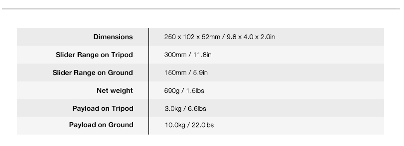 1. Providing twice the amount of camera travel compared to regular sliders of its size.