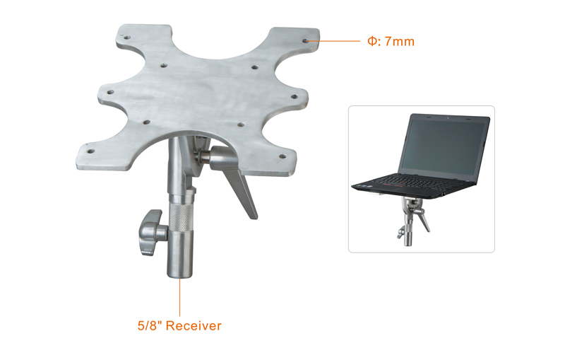 E-IMAGE S-053 has standard 7mm holes for firm, safe, and secure mounting. Attached to the ball joints for flexible positioning, the 5/8" industry-standard receiver will fit most stands or accessories with a 5/8" stud or pin.