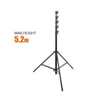 The E-IMAGE NEW LS-PRO71S Super High Aluminum Stand can support your camera up to a height of 5.2m. At its maximum height, it can bear a load of 5kg / 11lbs. It features an all-metal structure for excellent stability and comes with a 1/4" and 3/8" screw adapter on the top to accommodate a wider range of equipment.