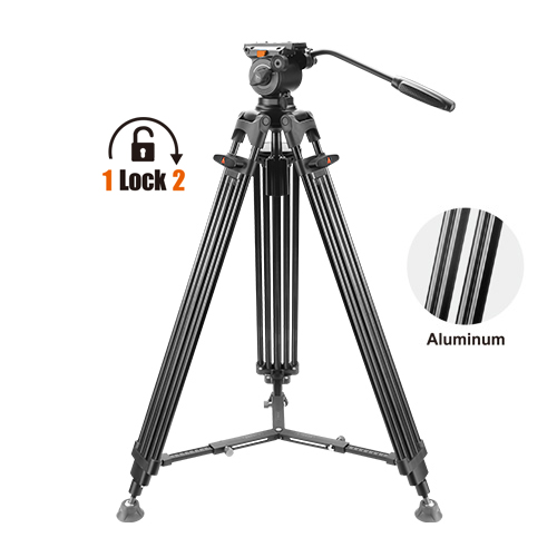 E-IMAGE EK522 aluminum tripod is engineered for lightweight videography. It includes a fluid head, a two stage carbon fiber legs. With a carbon fiber build weighing 4170g, it supports an 10kg(22lbs) payload. With a working height range of 82.5cm to 187.5cm and a compact storage height of 88cm, the offers versatile positioning options while remaining highly portable. The Mono-Lock feature allows for quick height adjustments of both stages with one twist. A kit bag is included.